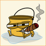 Bucket-O-Rash is a mysterious bucket with an enigmatic past. Raised by Tibetan Monks, Bucket-O-Rash didn't speak for the first 15 years of his life and to this day can't pronounce vowels, making his input virtually indecipherable.Bucket-O-Rash's speech impediment seems to have a somewhat hypnotising effect on listeners as they concentrate intently, trying to decode his slurred, staggered drivel. This alone is the attributing fact he was hired by Chickensweat during the great recruitment of '87.